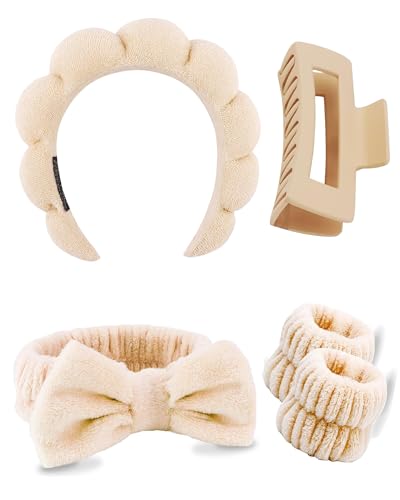 Sinland Spa Headband for Women 6 Pack Adjustable Makeup Hair Band with Magic Tape,Head Wrap for Face Care,Mask, Makeup and Sports