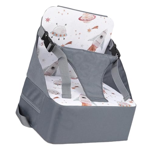 UBRAVOO Travel Booster Seat, Upgraded Toddler Portable Baby Chair with Storage Bag | Tray | Safety Harness, Foldable Baby Seat for Indoor/Outdoor, Camping, Picnic, Beach (Linen grey)