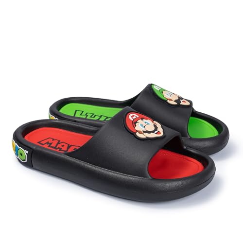 Ground Up Super Mario Youth Soccer Slides Boys Girls Kids Sandals Nintendo Character Slip-On Shower Pool Summer Casual Comfort Lightweight Sport Athletic Open Toe Non Slip Water Friendly Footwear