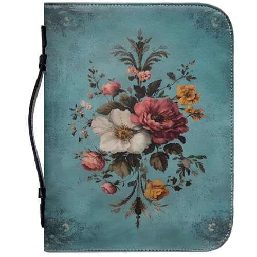 Bible Cases, Floral Bible Cover, Zippered Vintage Floral Print PU Case with Handle for Women and Girls, XL, Cover Case for Women