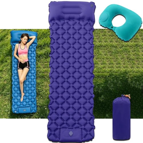 ZOOOBELIVES Camping Sleeping Pad with Built-in Pump & Pillow, 5-Inch Thick, 27-Inch Wide, Ultralight Inflatable Camp Mat with Snap Buttons, Compact for Hiking Backpacking - Airlite1901 (Chili Pepper)