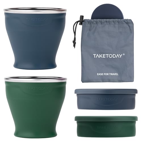 Silicone Collapsible Travel Cup,2 Pack Silicone Foldable Cup with Lid,BPA Free, Expandable Leak-Proof Drinking Cup, Portable Cup for Camping Hiking, Outdoors, Travel,11oz / 320ml, Blue & Pink