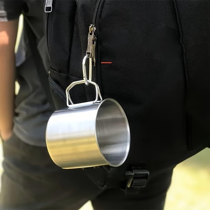 Falafale Stainless Steel Camping Mugs Outdoors Drinking Cup Picnic Mug with Foldable Handle Geat for Picnic,Hiking, Backpacking and Outdoor Activities, 4 Pack 22.3oz/ 660ml