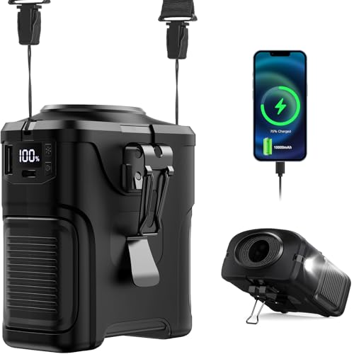 Camping Fan with LED Lantern, 20000mAh Rechargeable Battery Operated Outdoor Tent Fan with Light & Hanging Hook, 4 Speeds, Personal USB Desk Fan for Camping, Power Outage, Hurricane, Jobsite