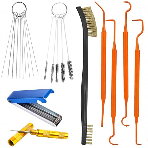 Carburetor Cleaning Kit, Carburettor Includes 23 Carb Needles 5 Nylon Brushes 1 Scraper and 4 Cleaner Hooks for Motorcycle ATV Chainsaw & Welder Maintenance