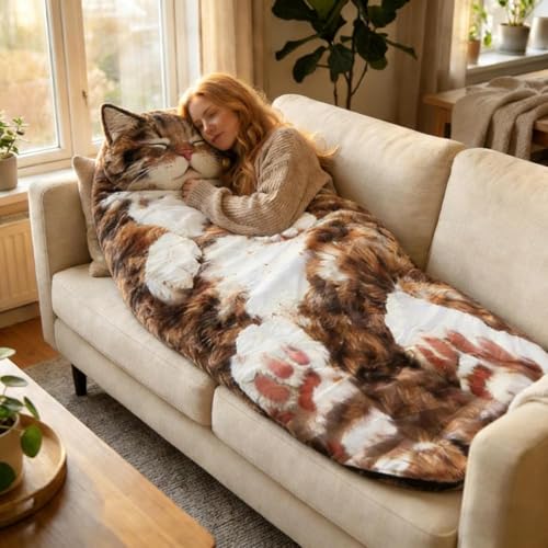 Cat Sleeping Bag for Humans, Fluffy Cats Sleeping Bag for Adults, Plush Wearable Envelope Blanket 68.9 Inch Washable Polyester, Indoor Lounging Camping Sleepovers