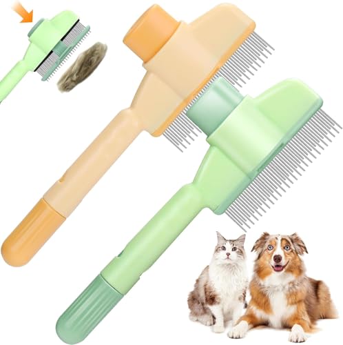 Cat Deshedding Brush, Gentle Pet Grooming Comb For Cats And Dogs, Dual-Length Teeth Hair Remover Tool, Effective Deshedding For Shedding Control (yellow+green, A)