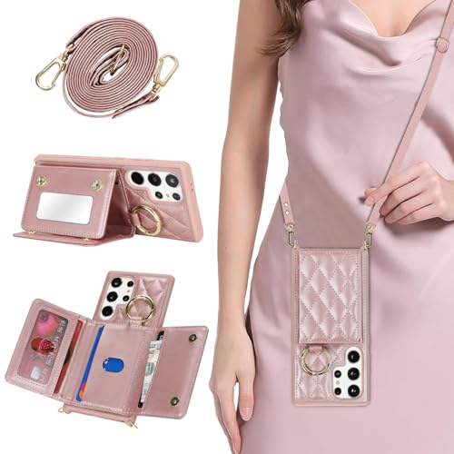 Ephoou Crossbody Wrist Strap Wallet Case for Samsung Galaxy S24 Ultra (Not S24) with Cash Change Slot for Women Girl, Removable Adjustable Shoulder Lanyard Cover for Galaxy S24 Ultra XK-Black