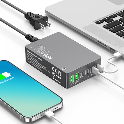 200W USB C Charger Block (C1:100W), Upgraded GaN III 6-Port Fast Charging Station Hub, PD 100W 65W USB C Laptop Charger Power Adapter for MacBook Pro/Air iPhone 17/16/15,Galaxy S25/S24 Steam Deck Dell