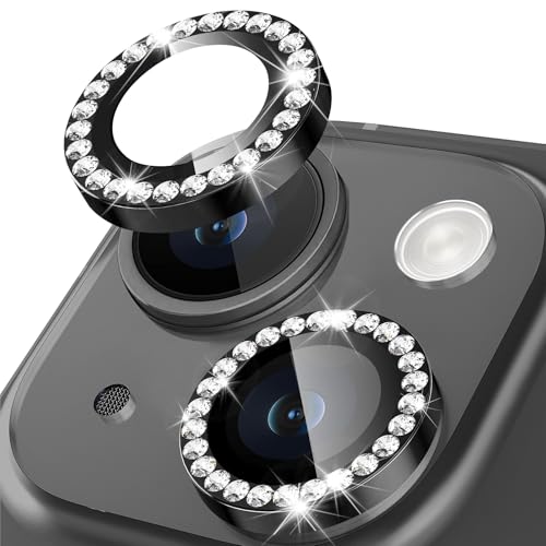 JETech Camera Lens Protector for iPhone 15 6.1-Inch and iPhone 15 Plus 6.7-Inch, Bling Glitter Individual 9H Tempered Glass Metal Ring Cover, HD Clear, 1 Set (Pink)