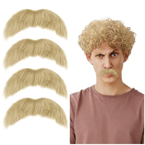 Vifcotlyp Yellow Mustache and Eyebrows, Realistic Fake Mustache Beard Facial Hair Self Adhesive for Halloween Cosplay Party