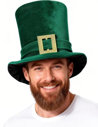 SUMERSHA 3Pcs St. Patrick's Day Hat Bow Tie and Suspenders Set for Women Men Adult Green Plaid Irish Cosplay Outfit, Green, free size fit most