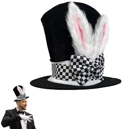 HATINXIA Easter Bunny Hat Costume - Magic Top Hat with Rabbit Ears, Bow Tie for Black White Rabbit Cosplay, Magician Props