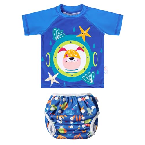 Baby Reusable Swim Diaper with Matching Top, Sleeveless Swimwear Infant Toddler Boys Green Dinosaur BLC2018-P