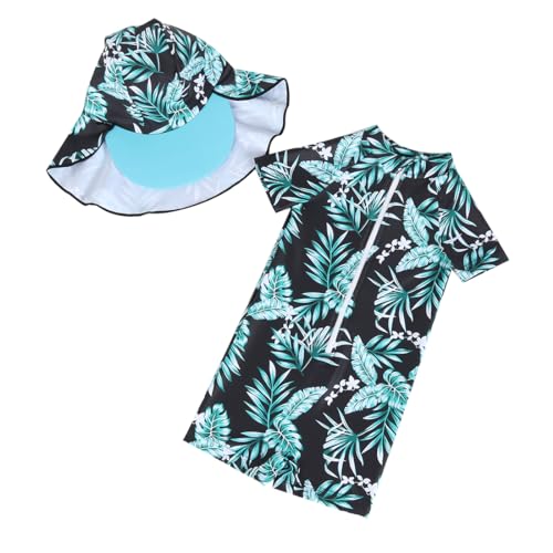 Toddler Baby Boy One Piece Swimsuit Kids Bathing Suit Long Sleeve Rash Guard Half Zipper Swimwear Sunhat Set