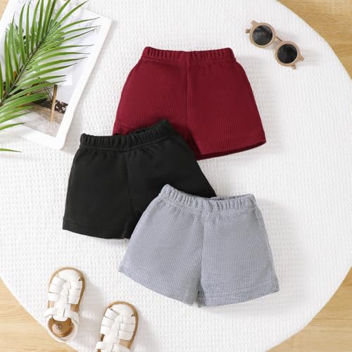 SOBOWO Baby Boys Girls Sport Shorts Summer 3-Pack Infant Solid Cotton Jogger Active Shorts Casual Harem Pants 0-24 Months
