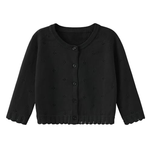 Toddler Baby Girls Knit Cardigan Solid Plain Hollow Open Front Sweater Newborn Infant Fall Jacket with Button