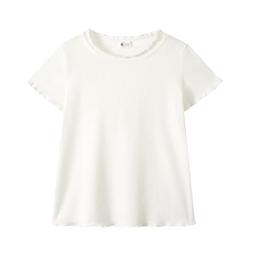 OPAWO Toddler Girl Shirts Ruffled Long/Short Sleeve Baby Tee Tops, Ribbed Toddler Girl Blouse, Baby Girl Clothes 2-Pack, 1-6T