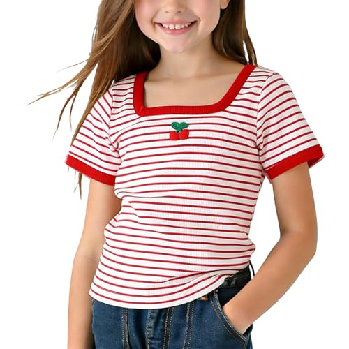 ZFZDRen 1-14Y Toddler Girls Shirt Baby Girl Blouse Solid Color Short Sleeve Heart Pocket T-Shirt Casual Cotton Tee Plain Top