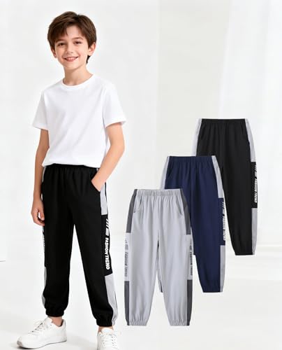 Boys Sweatpants 3 Pack Active Boys Joggers Athletic Pants Kids Activewear Pants with Pockets