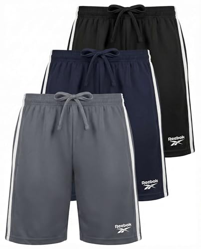 Reebok 3 Pack: Boys' Dry Fit Athletic Shorts w/Side Taping - Active Quick Dry Running Basketball Soccer Short for Kids Teens