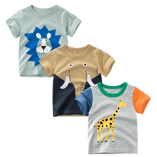 Shouldin 2-Pack Kids Cotton T-Shirts Short Sleeve Basic Tops for Toddlers Boys and Girls