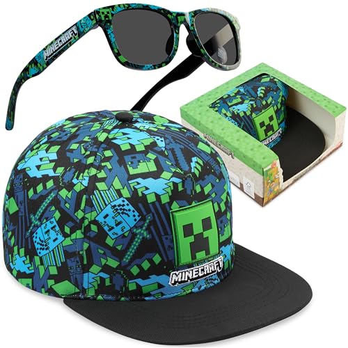Get Trend Minecraft | Fortnite | Super Mario | Spongebob Boys Baseball Cap Sunglasses Sets, Adjustable Hat 100% UV Shades