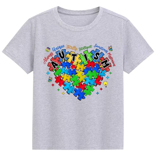 Kids Autism Shirt for Girls Boys Autism Awareness T Shirts Autism Support Love Graphic Casual Tees Tops