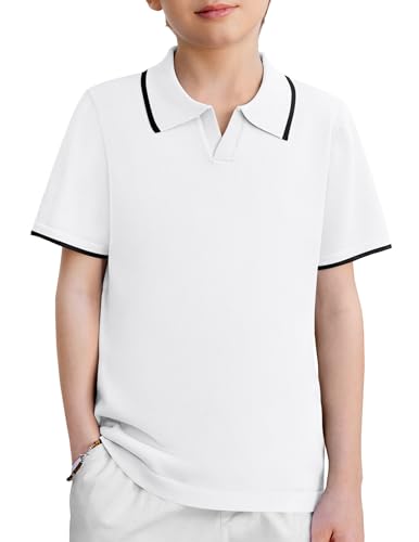 AlisOker Boys Polo Shirt Kids Short Sleeve Dry Fit Performance Print Golf Shirts Cuaual Active for Boy 8-16Y