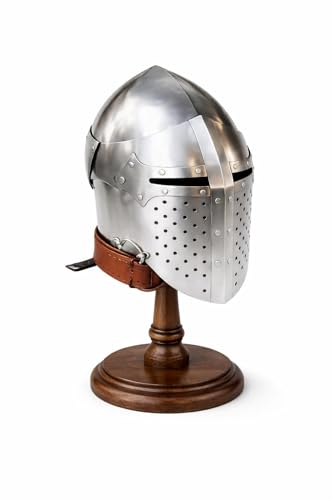 L M Handicrafts Medieval Deluxe Medieval Norman Helmet + Liner & Chin Strap, LARP SCA Col Silver Troy Sugarloaf Gladiator