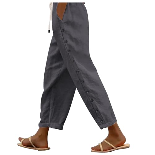 Women's Straight Leg Pants Cotton Linen Elastic Waist Trouser Casual Loose Fit Soft Comfy Vacation Beach Pant