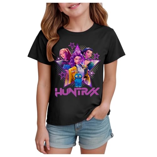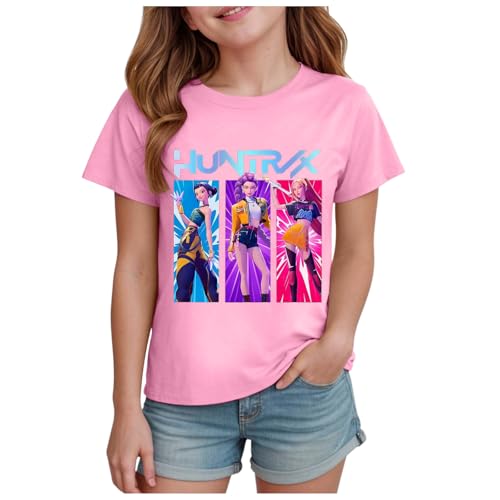 Girls T-Shirt Cute Cartoon Graphic Tshirts Trendy Funny Anime Hunters Shirts Loose Pink Tops Kids Short Sleeve Crewneck Tees