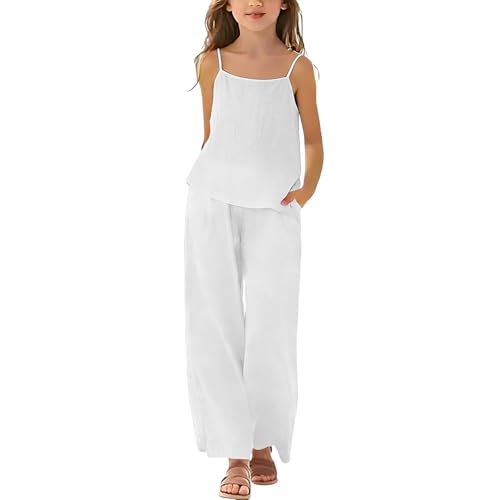 Teen Girls Linen Outfit Spaghetti Strap Camisole鈥 & Wide-Leg Pants 2026 Summer Fashion 2-Piece Set Lightweight Preppy Clothes