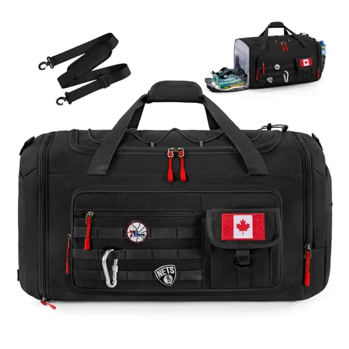 3-in-1 Tactical Gym & Travel Duffle Bag Backpack Men Multi-Functional 45L Military Sports Duffle Bag with Shoe Compartment & Wet Pocket for Workout Weekender Overnight Bag with Molle Webbing, Black
