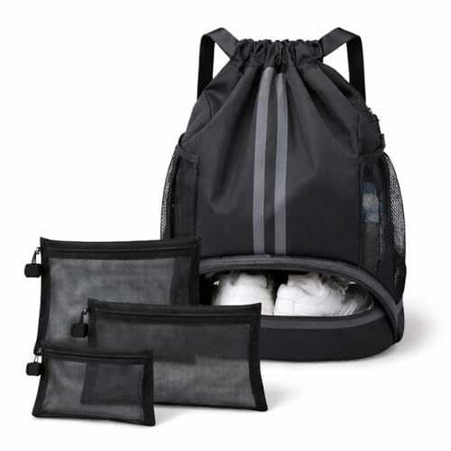 Drawstring Backpack with Shoe Compartment,Water Resistant Sports Gym Bag,String Bag for Men Women,Soccer,Basketball