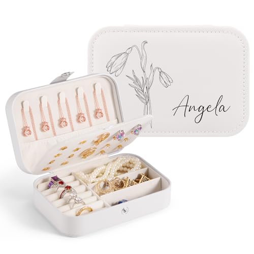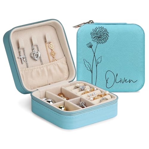 Personalized Jewelry Box,Travel Jewelry Case,Personalized Name & Birth Flower Month Jewelry Organizer, Gift for Girlfriend, Mom, Friend, Birthday, Wedding Anniversary