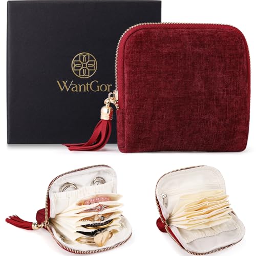 Kntiwiwo Hanging Jewelry Organizer, Foldable Jewelry Storage Bag with Metal Hook and Zippers, Double Sided Jewelry Holder 35 Pockets for Travel, Necklaces, Chains, Rings, Earrings, Bracelets, Watches