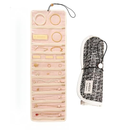 Jewellery Organizer Roll, Foldable Jewelry Case Portable Jewellery Bag For Journey-Rings, Jewellery Organiser Bag For Women Girl Large Size Pink