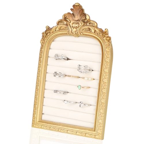 Frebeauty Jewelry Organizer Tray with Clear Lid 24 Grid Velvet Drawer Insert Jewelry Storage box with Transparent Glass lid Jewelry Display Case with Lock Gifts for Girls Women (Beige, 24 Grid)