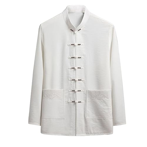 Cambkatl Men's Cotton Linen Tang Suit Loose Chinese Traditional Mandarin Collar Kung Fu Shirts Long Sleeve Tai Chi Outfits