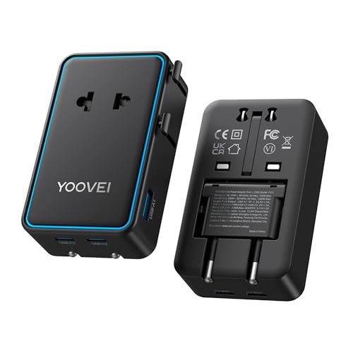 Universal International Travel Power Adapter, All in One Wall Charger with High Speed 2.4A 3xUSB, 3.0A Type-C, European Adapter, Worldwide AC Outlet Plugs for UK, EU, AU & Asia (Blue)