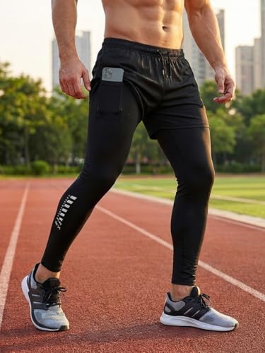ZDCGT Compression Pants Men Running Tights Leggings with Phone Pocket Athletic Workout Yoga Gym