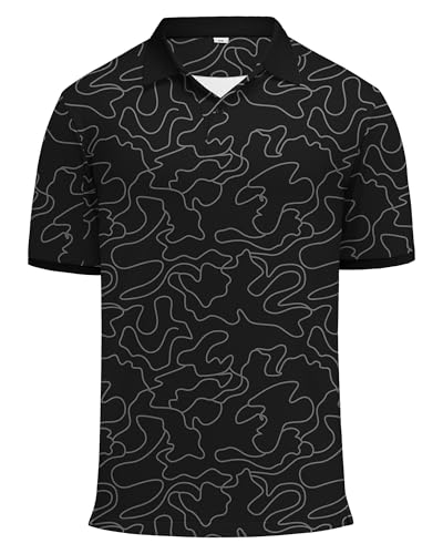 TACVASEN Golf Shirts Men Short Sleeve Polo Quick Dry Moisture Wicking Performance Casual Athletic Collared Print Shirt