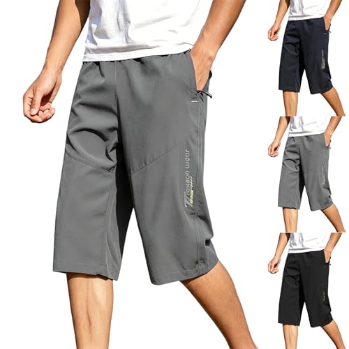 JustSun Mens Sports Shorts Casual with Elastic Waist Zipper Pockets