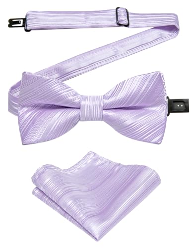Hi-Tie Bow Ties for Men Pre-Tied Adjustable Silk Bowties Lapel Pin Pocket Square Set for Wedding Party