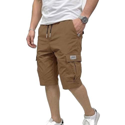 BEST SOUTH Men's Long Cargo Shorts Casual Below Knee 13 Inches Capri Shorts Relaxed Fit with Pockets
