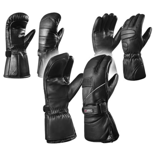KEMIMOTO Heated Motorcycle Gloves for Men with Battery, Windrproof EVA-Pad PU Leather Snowmobile Gloves for Men and Women with Touchscreen, for Cycling, Skiing, Snowboarding