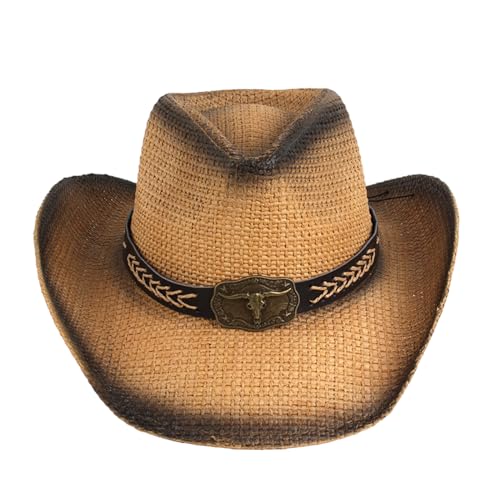 Straw Cowboy Hats Western Cowgirl Hat for Holiday Woven Beach Sun Hat with Wide Brim Shapeable Cowboy Hat for Women's/Men's