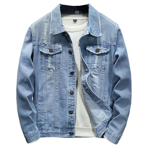 GHJCFVBS Men's Denim Jacket Long Sleeve Button Down Vintage Casual Lightweight Trucker Jean Jackets