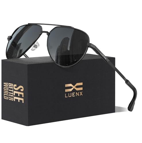 LUENX Classic Aviator Polarized Sunglasses for Men Women - Trendy Metal Sun Glasses UV 400 Protection